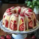 This cake blends classic pound cake texture with fresh strawberries and cream cheese. It bakes in a 10-inch bundt or tube pan and gets a light strawberry glaze. The result is sweet, creamy, and perfect for any occasion.
